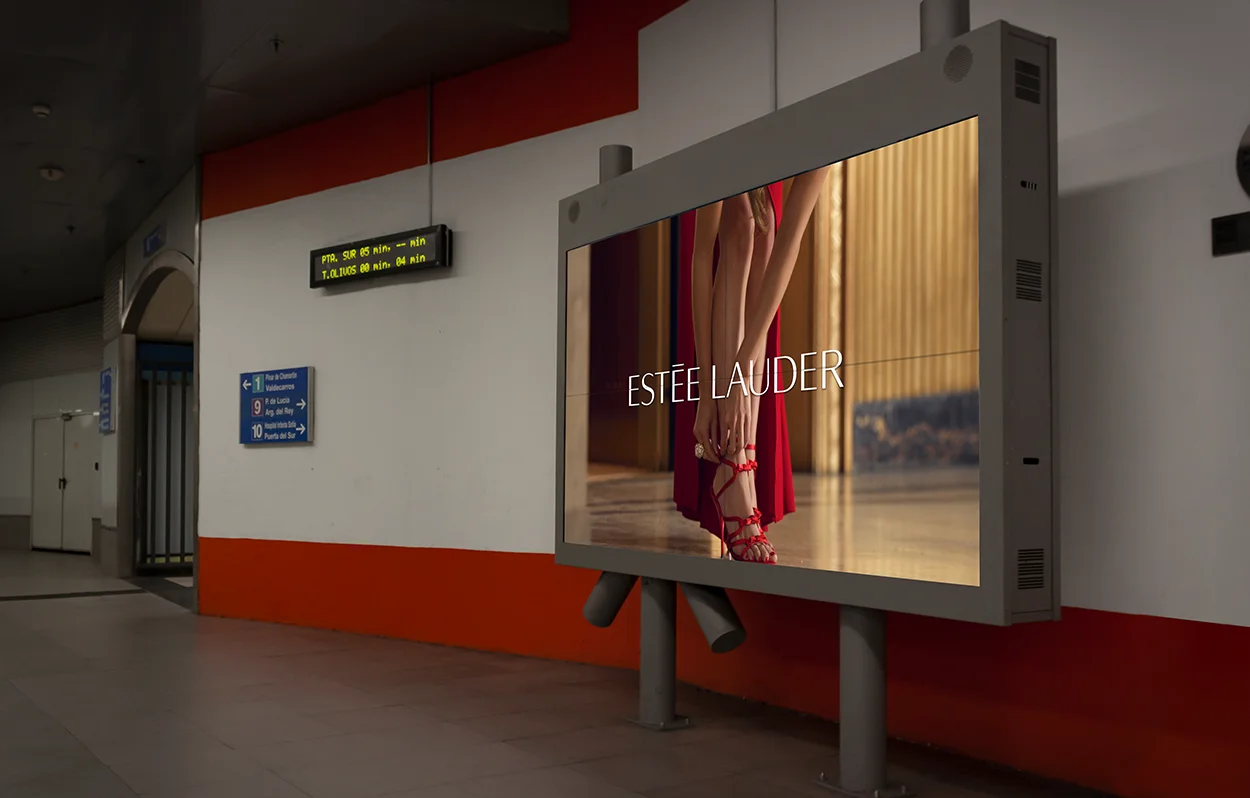 Junto a Estée Lauder creamos dos campañas que abarcaron todo el circuito de pantallas Bidiscount más las pantallas del Palacio de la Prensa, el circuito IN&OUT.